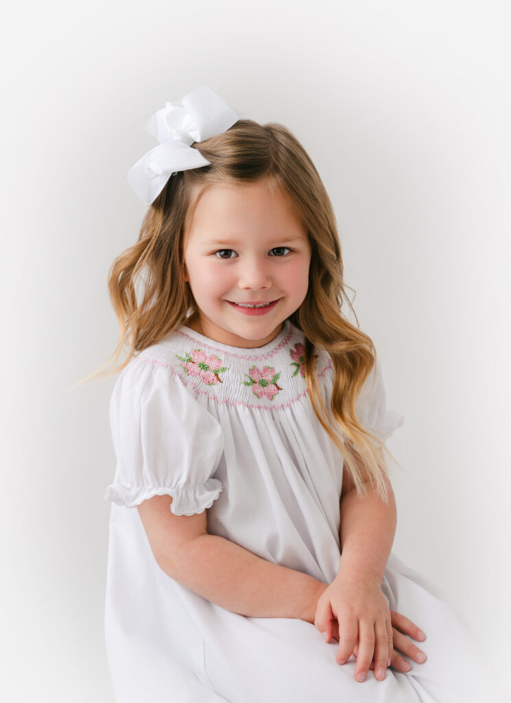 Several beloved children’s clothing brands are especially well known for heirloom portrait outfits. Some of my favorites include Feltman Brothers, Petit Ami, and the beautiful hand-smocked pieces created by Charlotte Sy Dimby.